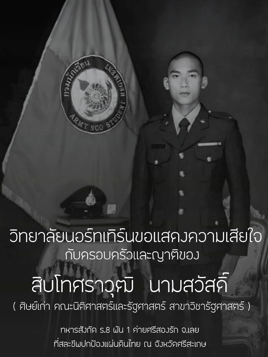 ขอแสดงความเสียใจอย่างสุดซึ้งกับครอบครัวและญาติของ ส.ท. ศราวุฒิ ศิษย์เก่าสาขาวิชารัฐศาสตร์ ที่สละชีวิตเพื่อปกป้องแผ่นดินไทย