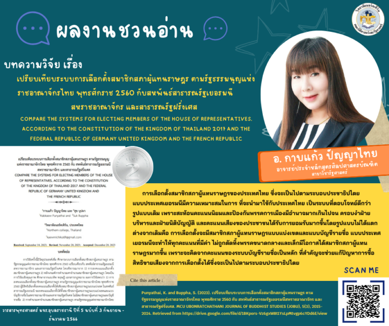 เปรียบเทียบระบบการเลือกตั้งสมาชิกสภาผู้แทนราษฎร ตามรัฐธรรมนูญ แห่งราชอาณาจักรไทย พุทธศักราช 2560 กับ สหพันธ์สาธารณรัฐเยอรมนี สหราชอาณาจักร และสาธารณรัฐฝรั่งเศส