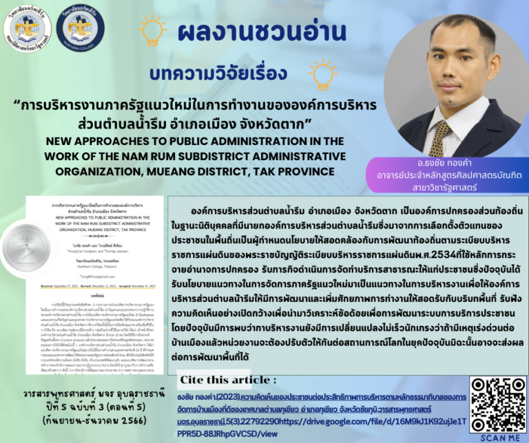 การบริหารงานภาครัฐแนวใหม่ในการทำงานขององค์การบริหาร ส่วนตำบลน้ำรึม อำเภอเมือง จังหวัดตาก