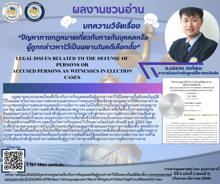 ปัญหาทางกฎหมายเกี่ยวกับการกันบุคคลหรือผู้ถูกกล่าวหาไว้เป็นพยานในคดีเลือกตั้ง
